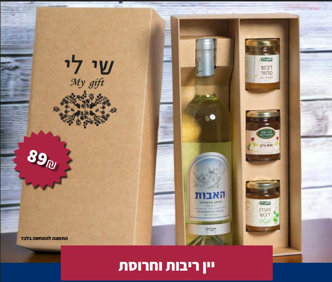 בחרו תכולה עם מסר – יין משדר יוקרה, דבש מסמל מתיקות, שמן זית מסמל ברכה.